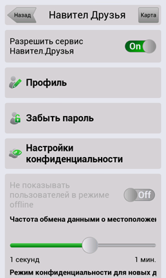 — Зарегистрируйтесь на сайте www.navitel.su или пройдите процедуру быстрой регистрации из программы — и пользуйтесь возможностью наблюдать за местоположением своих друзей на карте в режиме реального времени, обмениваться сообщениями или проложить маршрут для встречи с ними!
