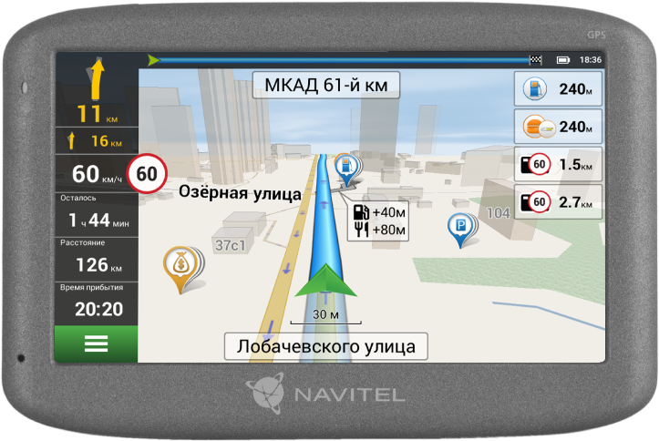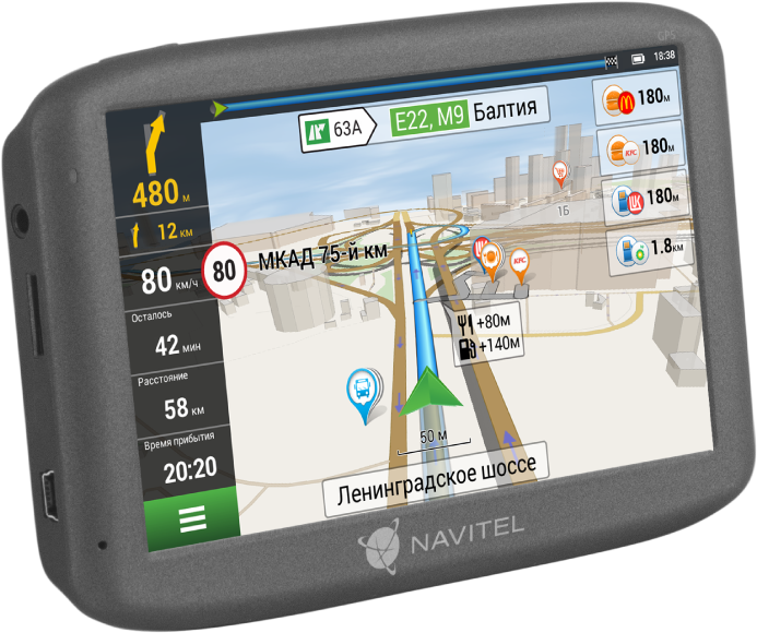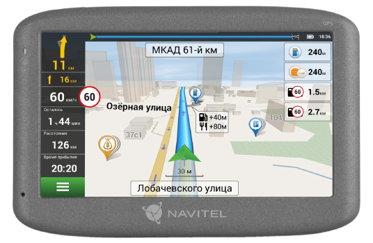 Программа является собственной разработкой компании NAVITEL® и содержит обширную базу объектов инфраструктуры и данные о расположении камер контроля скорости*. Бортовой компьютер дает своевременные подсказки по ходу следования маршрута.