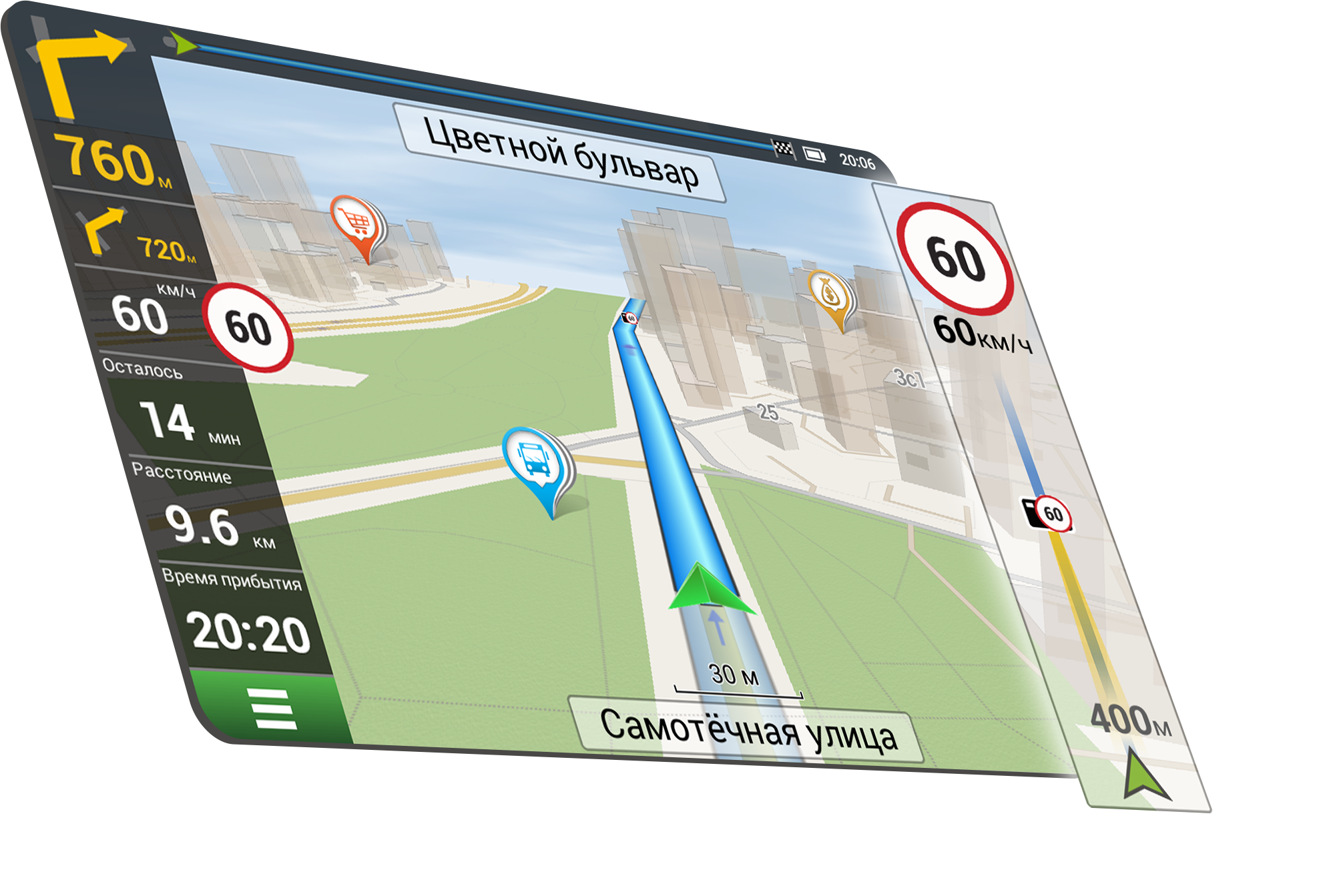 Карта содержат актуальные данные об инфраструктуре городов и населенных пунктов. Расширенная база объектов POI (заправки, банкоматы, рестораны и т.д.) позволяет легко находить нужные места. В дорожную сеть включены все улицы и дороги с учетом направленности движения и транспортных развязок, содержится информация о расположении стационарных дорожных радаров и камер контроля скорости*.