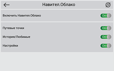 Если такого значка на панели инструментов нет, то, возможно, он не помещается из-за действующей ориентации экрана. Попробуйте изменить ориентацию экрана. Если значок не появился, тогда выберите Меню > Настройки > Интерфейс > Кнопки на карте, затем включите отображение значка Навител.Облако. - В открывшемся диалоговом окне Навител.Облако нажмите Включить.