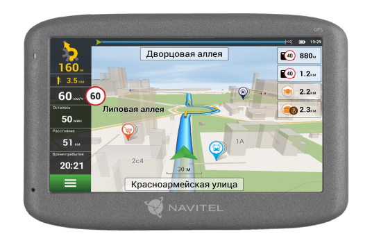 Благодаря предустановленному ПО Навител Навигатор, устройство обеспечит стабильную и бесперебойную работу в каждой поездке. NAVITEL E500 позволяет загрузить дополнительные карты: устройство имеет 8 ГБ внутренней памяти, а также дополнительный внешний слот для карт microSD до 32 ГБ.