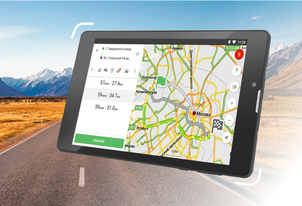 NAVITEL T500 3G AUTO – современный планшет на базе операционной системы Android 7.0. Мощность устройства достигается благодаря 4-ядерному процессору MediaTek с тактовой частотой 1.3 ГГц. Планшет также оснащен фронтальной и основной камерами и разъемами для двух SIM-карт и слота для microSD карты. NAVITEL T500 3G AUTO имеет 1 ГБ оперативной памяти и 8 ГБ внутренней памяти для загрузки дополнительных навигационных карт.